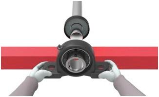 將1個填好油脂的終端蓋穿到軸上,然后裝帶座軸承(方法和標準產品一致)。推薦在軸的末端要加工倒角,避免損壞終端蓋上的橡膠密封唇。